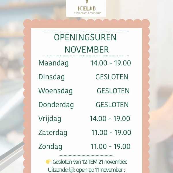 Dit zijn onze openingsuren voor november, perfect om je volgende bezoek aan...