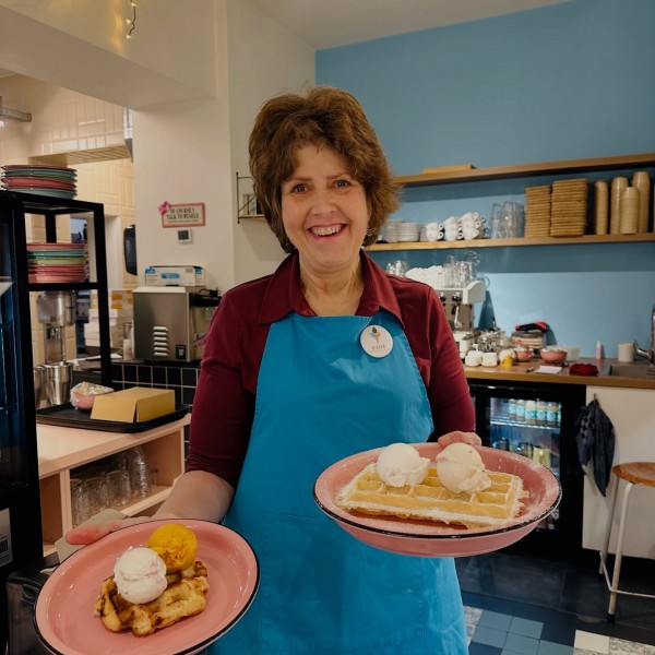 Vegan waffles and ice cream cakes